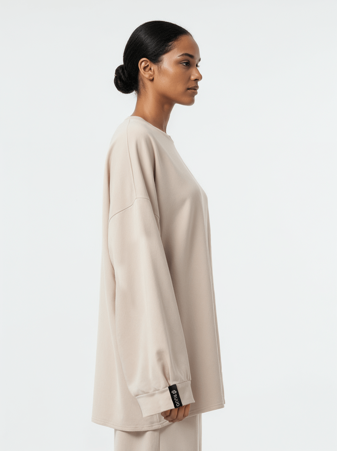 RUUQ Oversized Long Sleeve Cotton Twill Shirt - Porcelain