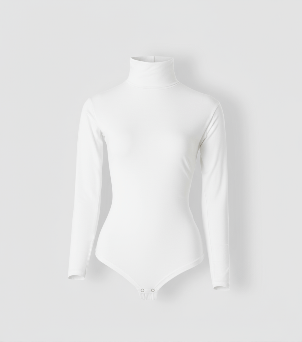 RUUQ Bodysuit Long Sleeve with Mock Neck - White